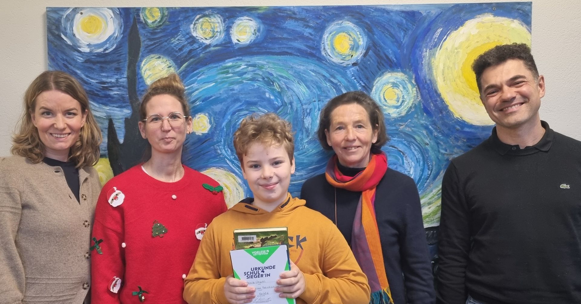 Sechs hervorragende Leser:innen aus den Stufen 7-Q1 (Patrick W., Emilia F., Valeria R., Jule F., Leanna E. und Justus L.) lesen aus dem Buch „Alma und die Landkarte der Zeit“ des Krefelder Fantasy-Autoren Akram El-Bahay, Schülervater und langjähriges Jurymitglied unserer Vorlesewettbewerbe.
